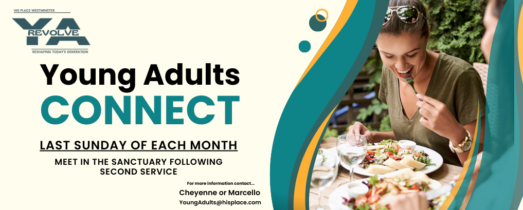 Join our Revolve Young Adults as they grab lunch every Sunday of the month after second service. Meet in the sanctuary right after second service ends and go fellowship together over some good food. Contact Cheyenne or Marcello for more info at [email protected]. |